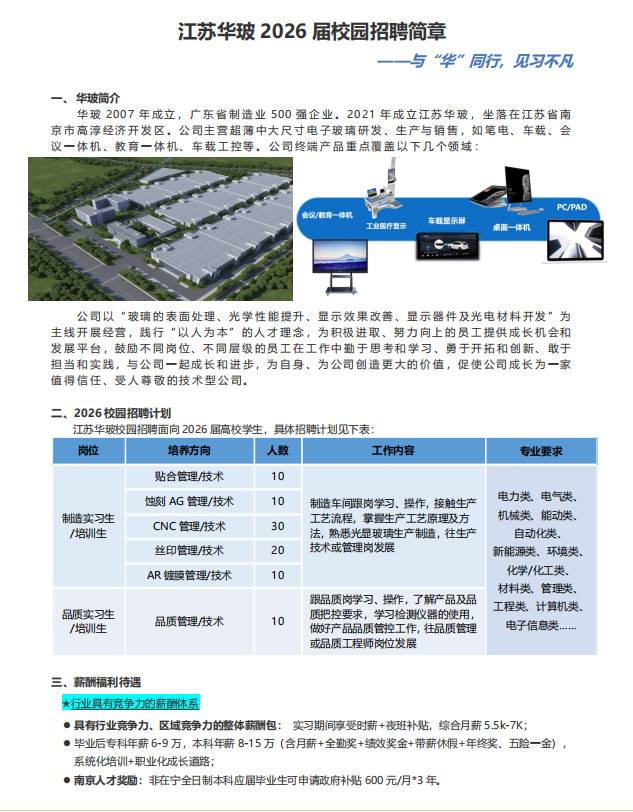 招聘单位:江苏华玻光电技术有限公司